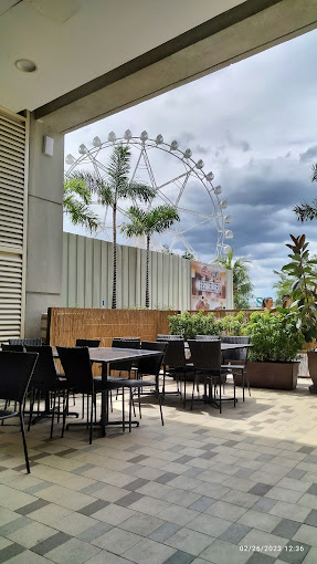 Kakaiba ang ambiance ng restaurant na ito dahil kapag sumilip ka sa labas ay makikita mo ang isang matayog na Ferris Wheel na pinangalanan bilang MOA eye. Komportable ang kanilang mga upuan at lamesa. Mababait ang mga staff ng Gerry's Grill Restaurant. Medyo matagal lamang ang kanilang serving time dahil maraming tao ang kumakain. Ang malamig na air conditioning ay nagbibigay ng kakaibang kaginhawahan habang nilalasap ang kanilang masasarap na pagkain.